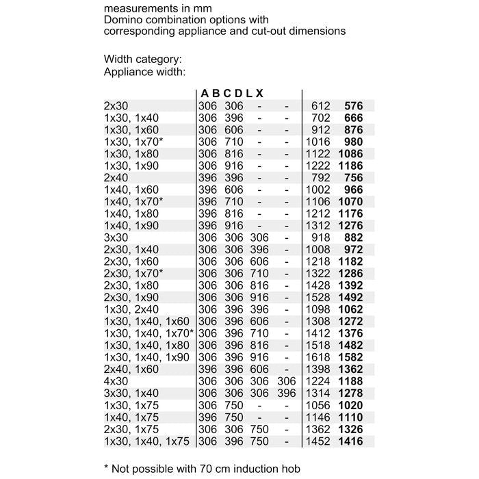- Dimensions of the heating elements (not applicable for gas): 1 x (18,0 cm Ø), 1 x (14,5 cm Ø)