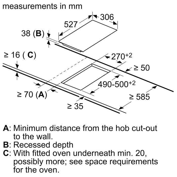 - Appliance height above the worktop: 6.0 mm