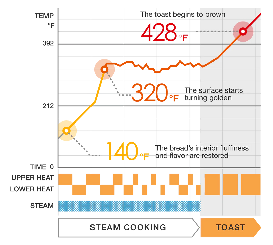 Second-by-second control of three temperature zones creates superb contrasts of flavor and texture: a crisp and savory outside with a moist and fluffy inside.